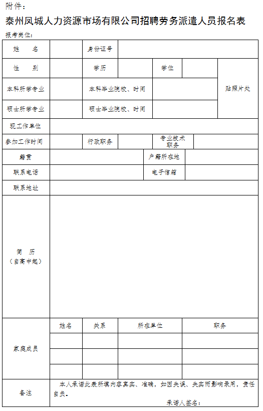 泰州鳳城人力資源市場有限公司招聘勞務(wù)派遣人員報(bào)名表 點(diǎn)此下載