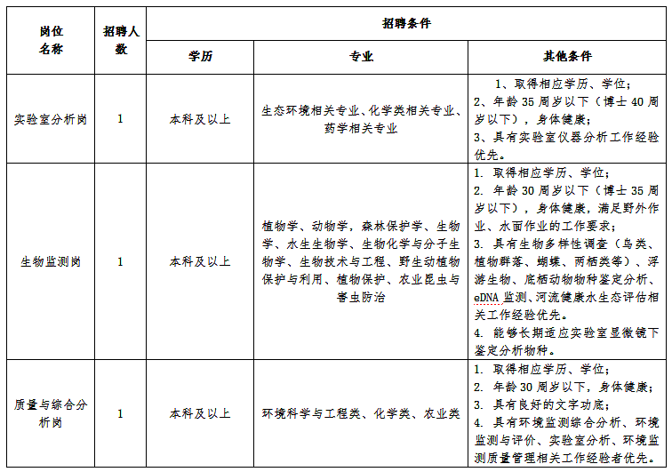 江蘇省泰州環(huán)境監(jiān)測中心為全額撥款事業(yè)單位,隸屬于江蘇省生態(tài)環(huán)境廳,是從事生態(tài)環(huán)境監(jiān)測和科研,為環(huán)境管理和社會經濟服務的環(huán)境監(jiān)測機構。根據工作需要,現(xiàn)面向社會招聘3名工作人員,派遣至江蘇省泰州環(huán)境監(jiān)測中心從事與環(huán)境監(jiān)測相關工作。具體要求如下: